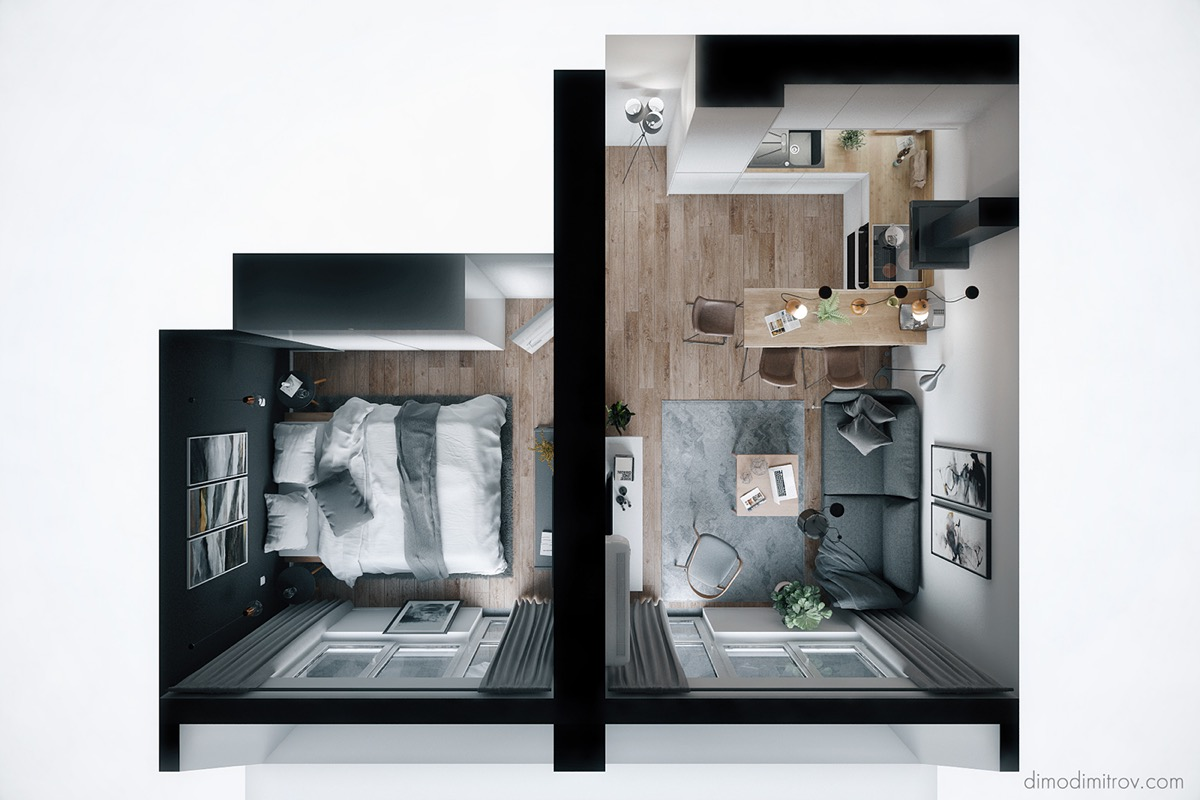 Alomuabannhadat – Căn hộ chỉ 28m2 này được thiết kế màu xám trung tính, nội thất đơn giản nhưng mang lại cảm giác tinh tế, hiện đại.