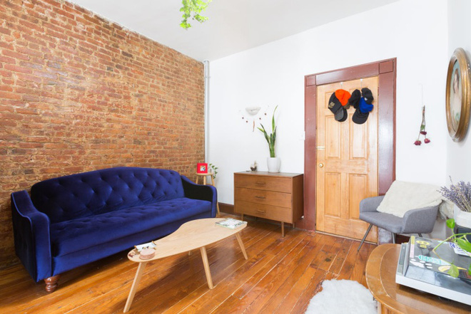 Bộ ghế sofa màu xanh cobalt tạo điểm nhấn độc đáo cho không gian phòng khách giản dị.