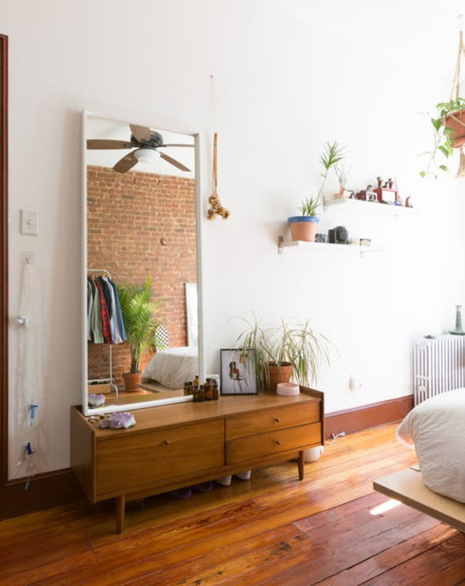 Mặt khác, những căn hộ diện tích nhỏ thường có chiều cao hạn chế. Nếu bạn thích những vật dụng nội thất có hình chữ nhật đứng thì nên tận dụng tối đa khoảng cách từ sàn nhà lên trần, bằng cách sắp xếp các vật dụng ít dùng lên trên nóc tủ. Hoặc bạn cũng có thể bố trí các giá treo tường ở phía trên cửa đi, cửa sổ, vừa tạo thêm nơi để đựng đồ, vừa để trang trí cho căn nhà thêm hài hòa.