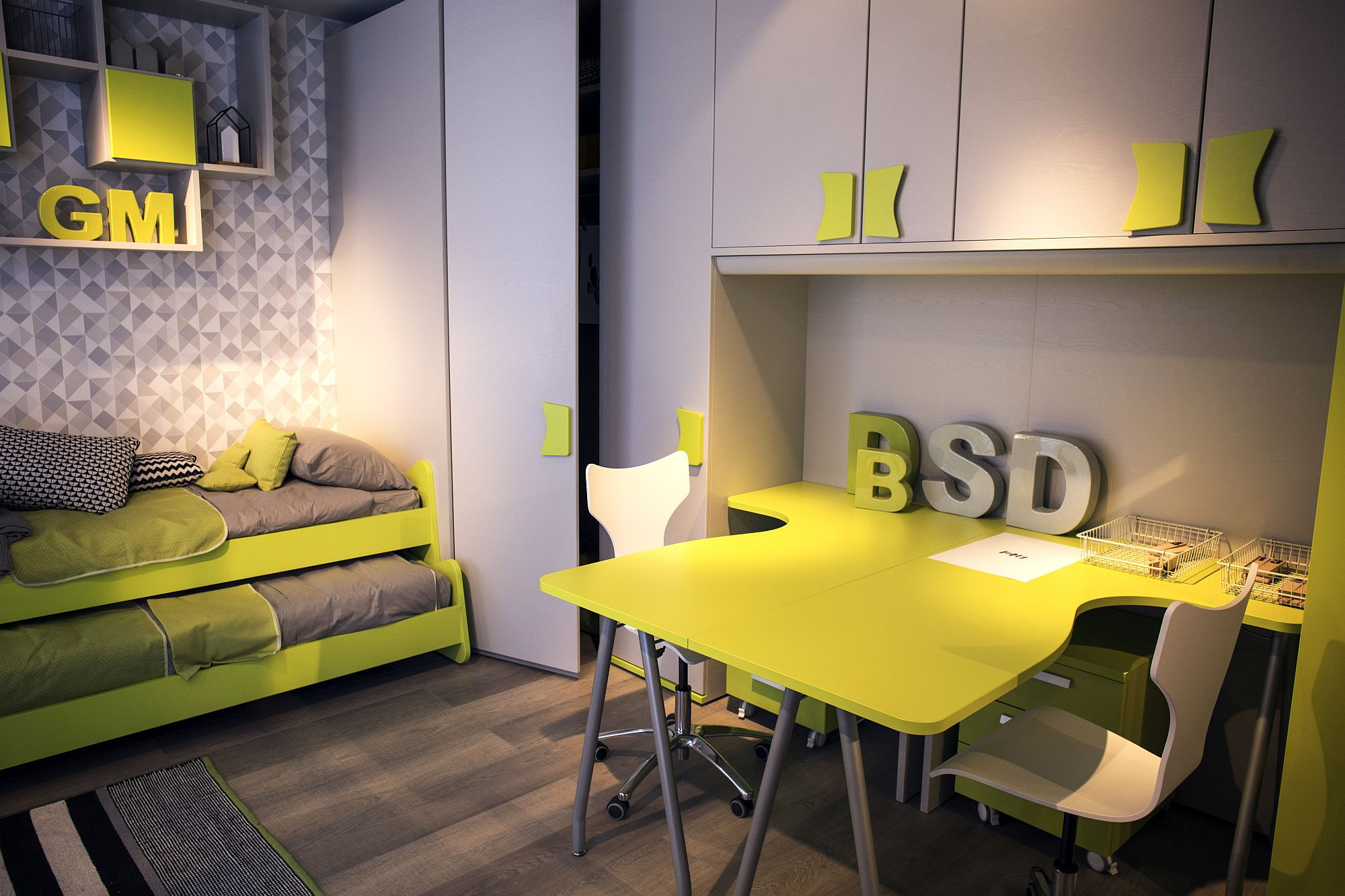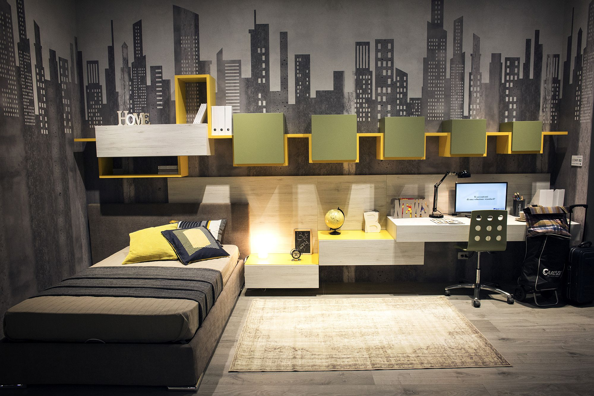 Một thiết kế với điểm nhấn các hình khối, thích hợp với những cậu bé ưa khám phá, nghiên cứu khoa học, công nghệ.