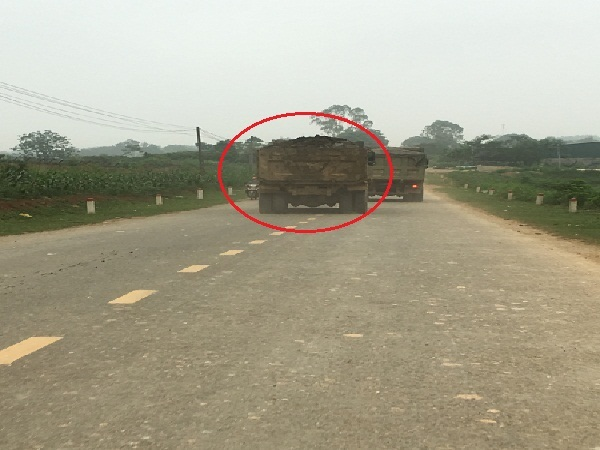 Xe tải cỡ lớn chở đầy đất, không phủ bạt tung hoành trên đường