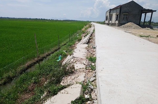 Bên cạnh đó, các ta luy 2 bên đang thi công bị rất sơ sài, có nguy cơ sụt lún bất cứ lúc nào. Đặc biệt, các khe co giãn mặt đường không đúng kĩ thuật khiến mặt đường xuất hiện nhiều vết nứt gãy. Con đường cũng nằm cạnh các nhà dân.
