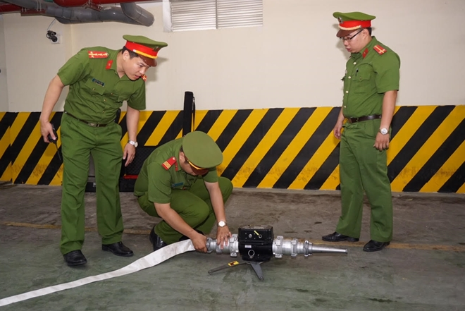 Cảnh sát PCCC kiểm tra vòi chữa cháy