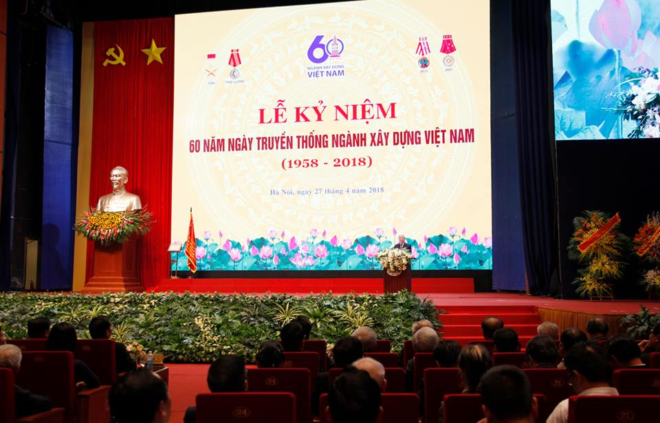 Sáng 27/4, tại Hà Nội, Bộ Xây dựng đã tổ chức Lễ kỷ niệm 60 năm ngày truyền thống ngành xây dựng Việt Nam. Tổng Bí thư Nguyễn Phú Trọng đã tham dự và có bài phát biểu định hướng phát triển của ngành xây dựng Việt Nam.