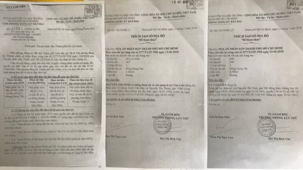 Tiếp đó, theo nội dung văn bản trích sao sổ địa bộ số 201, chủ đất của lô đất số 287 trước đấy là bà Nguyễn Thị Ninh (mẹ của ông Châu) còn nội dung văn bản trích sao sổ địa bộ số 202 thì chủ đất của lô đất số 288 trước đấy là ông Lý Văn Liền (bố của ông Châu).