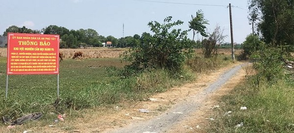 Một tấm bảng thông báo cấm phân lô đất nông nghiệp của UBND xã An Phú Tây, huyện Bình Chánh
