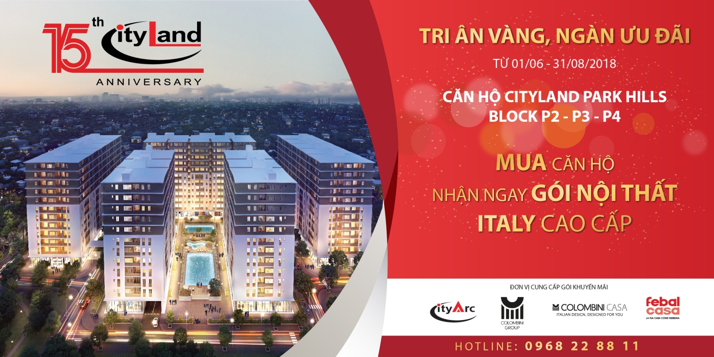 Nhân dịp kỷ niệm 15 năm thành lập, Cityland dành tặng khách hàng chương trình khuyến mại với giải thưởng lên đến 30 tỉ đồng từ nay đến 31/8/2018 đối với tất cả sản phẩm căn hộ, biệt thự, nhà phố.