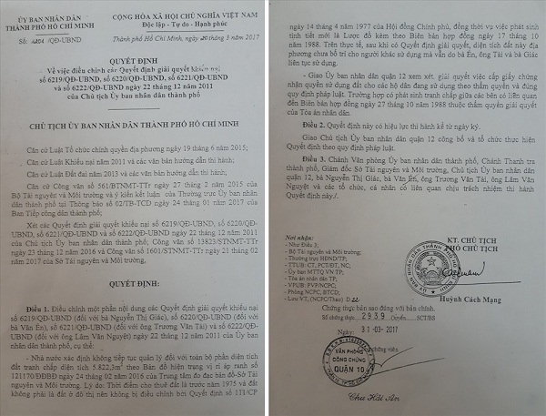 Vẫn không đồng tình với quyết định trên, các hộ dân liên quan đã liên tục khiếu nại thì cuối cùng ngày 20.3.2017, UBND TP.HCM đã ban hành Quyết định số 1201/QĐ-UB, nội dung: