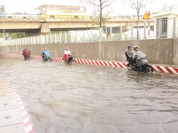 Ngập nước đang là nỗi ám ảnh của người dân TP.HCM. Ảnh chụp ngập nước tại hầm chui cầu Bình Triệu ngày 2/5. Ảnh: T.D.