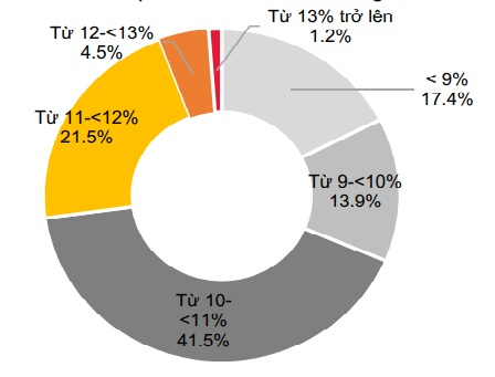 Cơ cấu trái phiếu bất động sản theo khoảng lãi suất. Nguồn: SSI