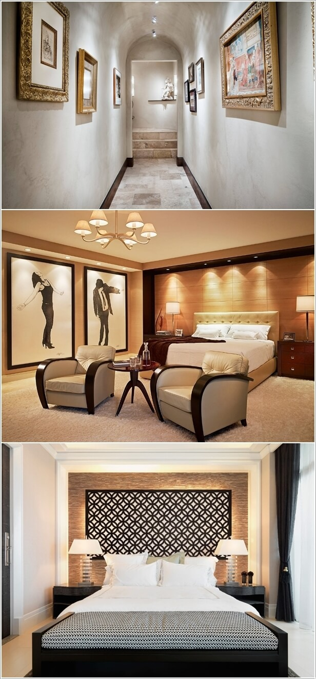 Dọc hành lang hay phòng ngủ, bạn có thể treo những bức tranh với khung trang trí hoa văn độc đáo.