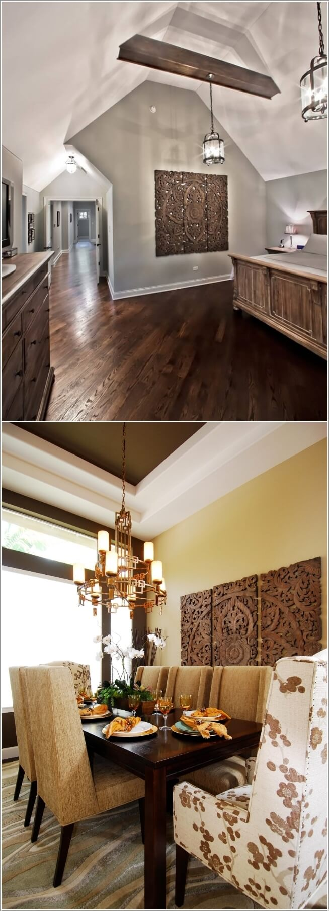 Trang trí nhà bằng những tấm gỗ chạm khắc bạn sẽ không phải lo lỗi mốt theo thời gian và tạo được nét cổ điển sang trọng trong căn nhà.