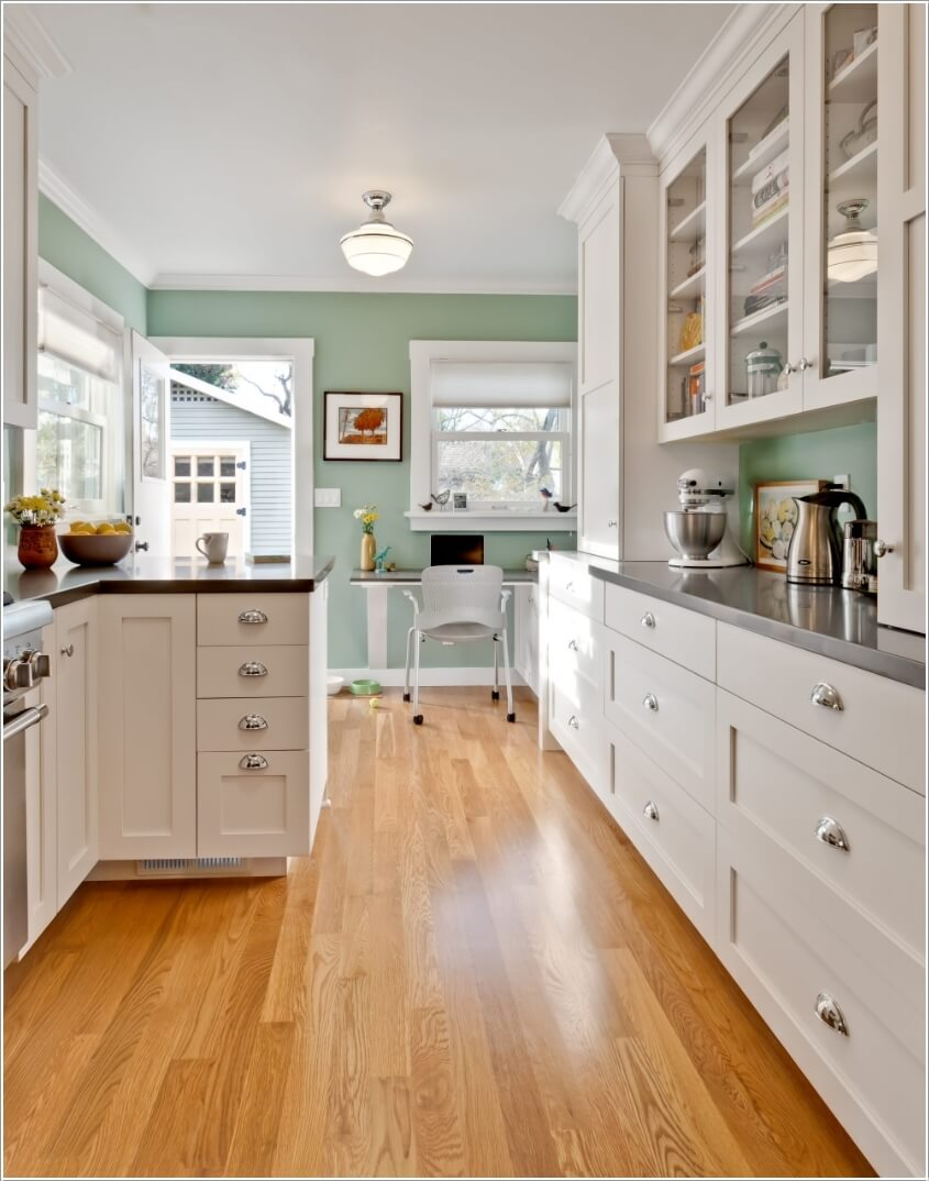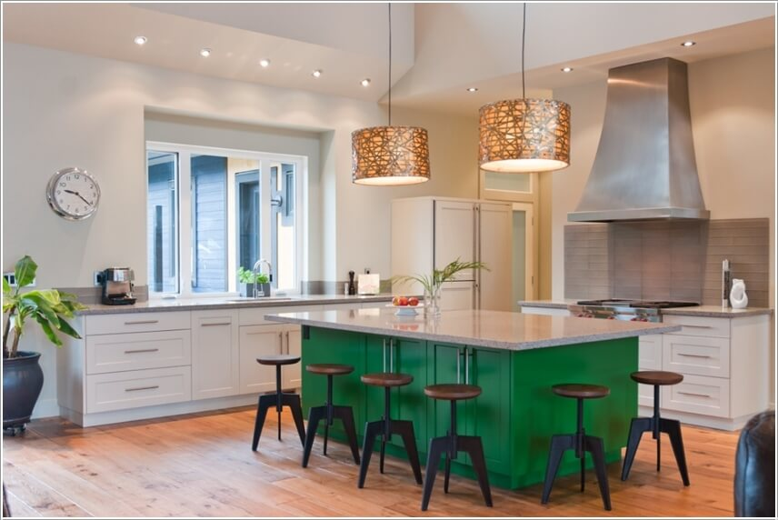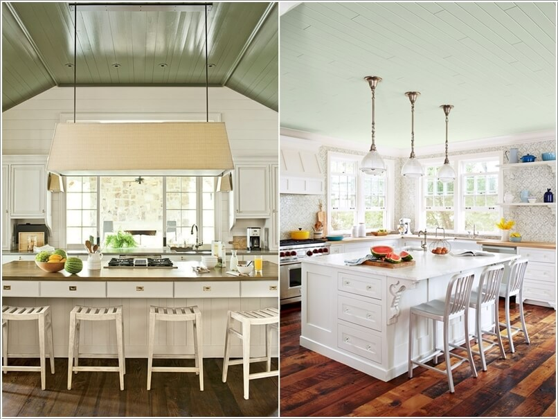Sơn các bức tường hoặc trần trong nhà bếp với màu xanh nhẹ nhàng mà tinh tế và cũng không kém phần sang trọng hiện đại.