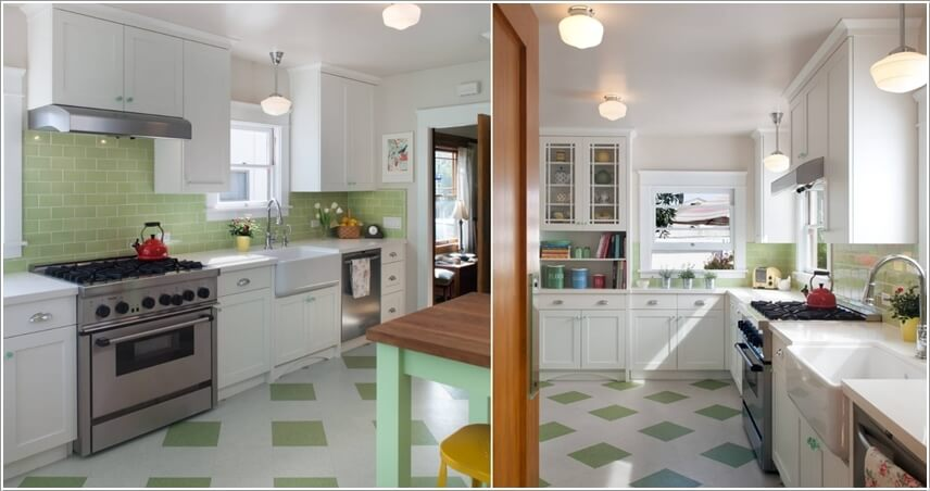 Tạo điểm nhấn cho căn bếp bằng Backsplash – bề mặt phía sau bồn rửa hoặc nhà bếp có tác dụng như một tấm chắn tường bếp với sự thanh lịch của màu xanh lá cây.