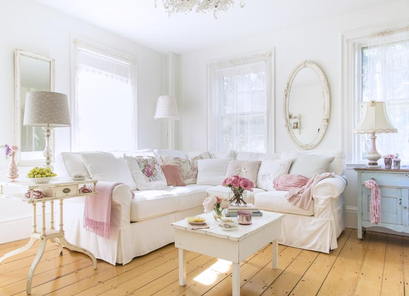 Điểm đặc trưng của phong cách này là sử dụng các tông màu nhạt như màu pastel, hồng phớt, xanh nhạt, xám nhẹ làm chủ đạo. Với những căn nhà theo phong cách Shabby Chic, những sắc màu sáng sẽ là sự lựa chọn hoàn hảo để giữ nguyên vẻ nữ tính, ngọt ngào, lãng mạn mà Shabby Chic hướng tới.