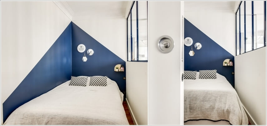 Khối màu góc của phòng ngủ nhỏ tạo cho bạn cảm giác căn phòng rộng hơn rất nhiều.