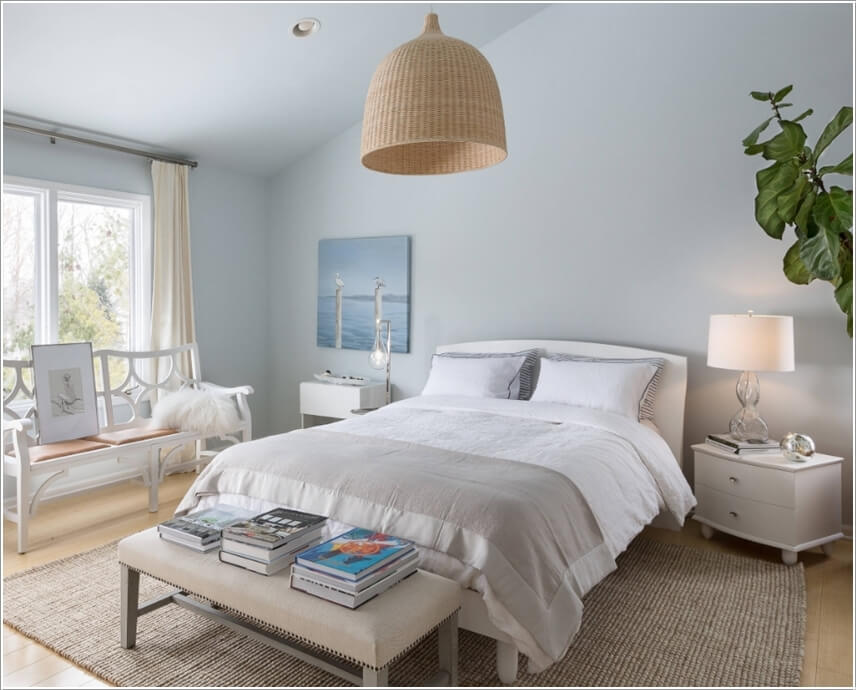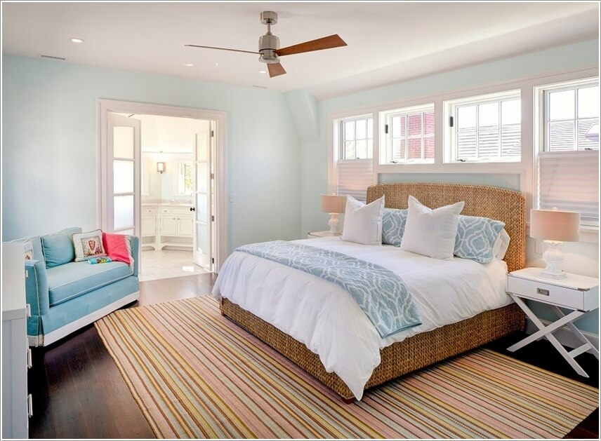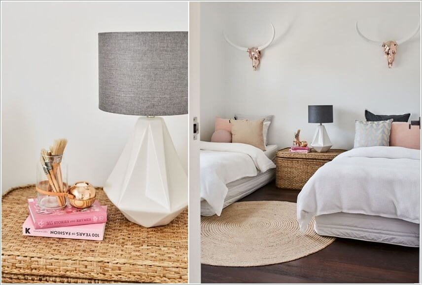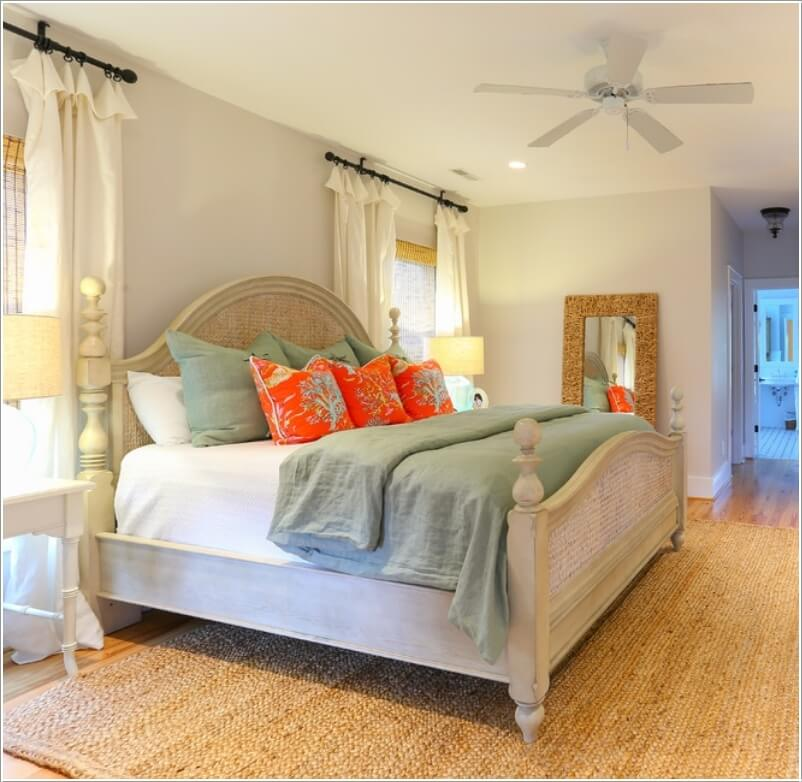 Tấm thảm wicker tạo cảm giác ấm áp và giữ được độ bền trong phòng ngủ.