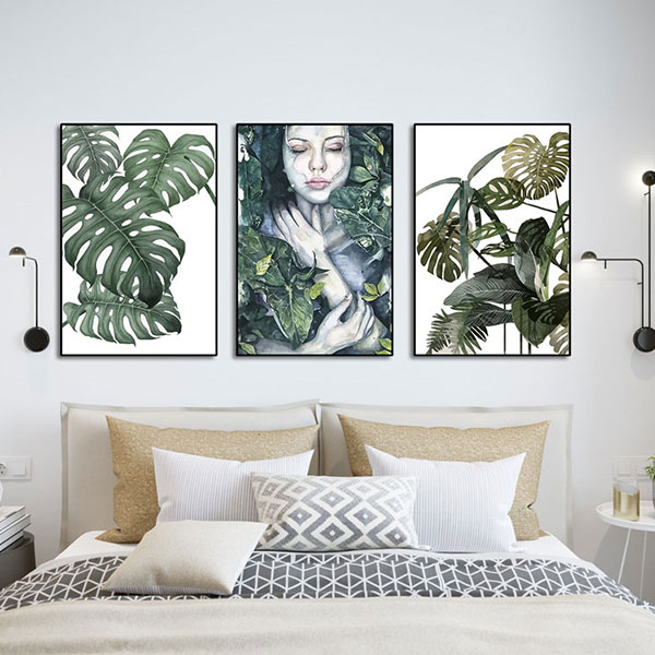 - Những bức tranh chủ đề hoa lá, hình ảnh nghệ thuật có thể treo trong phòng ngủ người lớn để thể hiện nét tính cánh riêng của mỗi người;