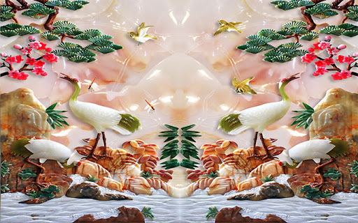 Tranh gạch 3D tùng hạc diên niên dành cho những không gian phòng khách sang trọng thể hiện bề thế của gia chủ.