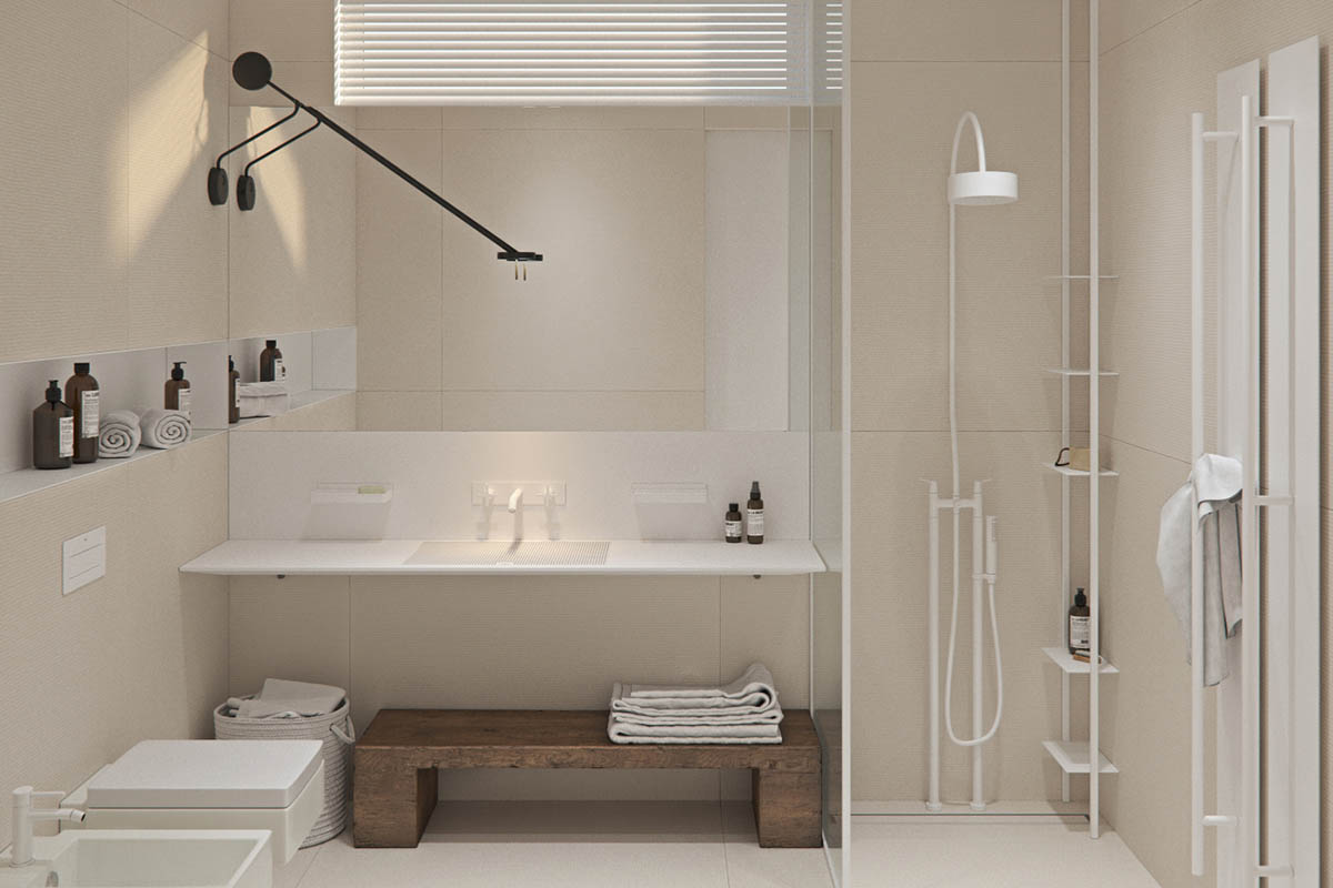 Thêm một thiết kế tối giản theo phong cách thời trang cao cấp đi kèm các phụ kiện nội thất kiểu dáng lạ mắt đã mang đến không gian phòng tắm vừa thời thượng vừa ấn tượng.