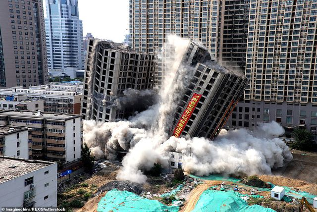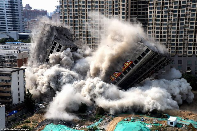 Hai tòa nhà cao 20 tầng xây dựng trái phép ở Trung Quốc đã đánh sập trong nháy mắt khi chính quyền địa phương dùng hơn 1 tấn thuốc nổ để kéo sập.