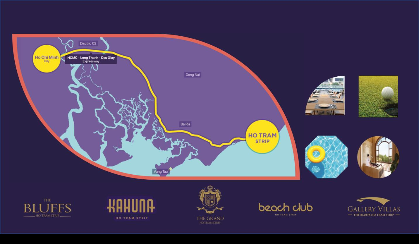 Bên cạnh vị trí đắc địa ven biển cách TP.HCM chỉ 2 tiếng di chuyển, giá trị cốt lõi của Hồ Tràm Strip còn là sự cộng hưởng đến từ 4 dự án (trị giá đầu tư hơn 1 tỷ USD) đã và đang được phát triển bài bản trong vòng 10 năm qua.
