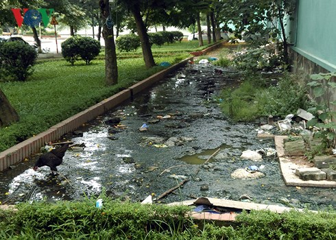 Bể phốt lộ thiên tại nhà N6 Khu tái định cư Đồng Tầu-Hoàng Mai.