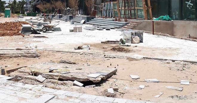 Tại khu Ngoại giao đoàn, theo khảo sát của phóng viên Báo Đầu tư Bất động sản, toàn bộ khu vực hành lang bên ngoài vẫn đang ngổn ngang thi công, dự án vẫn như một công trường xây dựng hơn là các tòa nhà đã sẵn sàng đón cư dân vào ở.