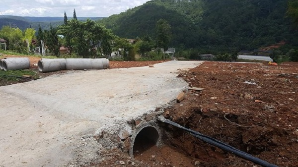 Hệ thống ống cống thoát nước, đường bê tông được hoàn thiện. Ảnh: Đoàn Kiên