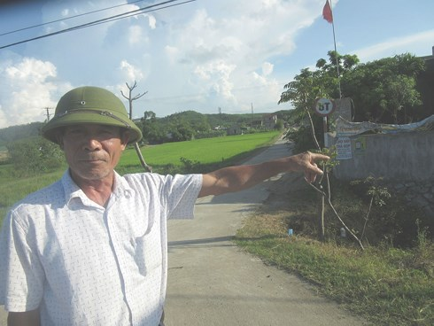 Ông Nguyễn Ngọc Biếm bên lô đất của mình được UBND xã Kỳ Giang cấp cho người khác