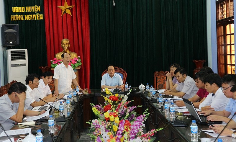 Lãnh đạo Huyện ủy, UBND huyện Hưng Nguyên cung cấp thông tin tại buổi họp báo.