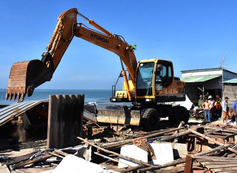 Sáng 25/5, lực lượng chức năng UBND phường 11 phối hợp với TP. Vũng Tàu (BRVT) tiến hành cưỡng chế các công trình lấn chiếm, dựng nhà trên đất do Nhà nước quản lý tại khu vực ven biển cuối đường D10 (tổ 13, khu phố 1, phường 11).