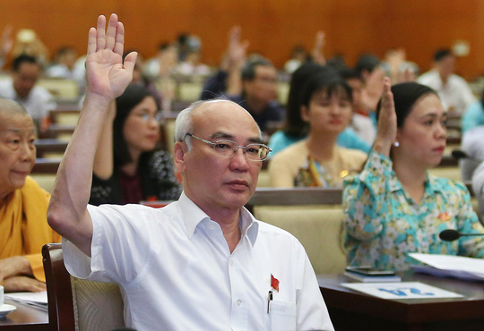 Các đại biểu HĐND TP HCM biểu quyết thông qua nghị quyết về đất công Ảnh: Hoàng Triều