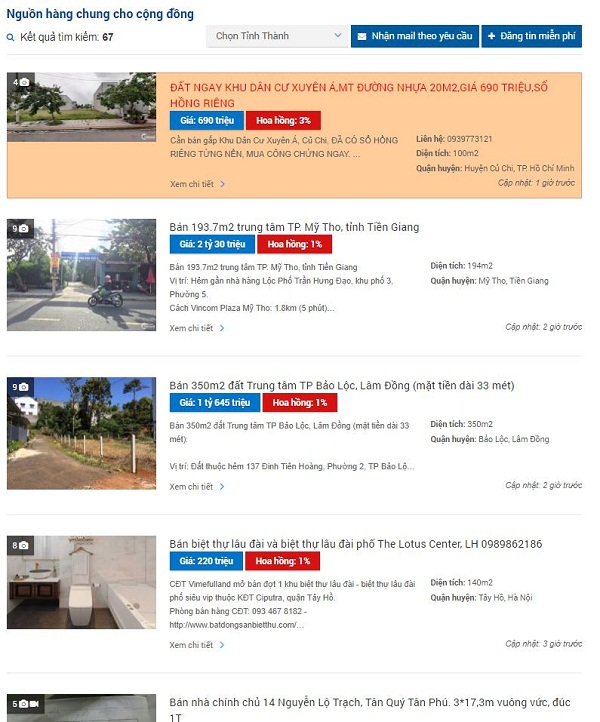 - Nguồn tin rao mới và chất lượng, phủ đều khắp 64 tỉnh thành Việt Nam. Thông qua đội ngũ kiểm duyệt kỹ lưỡng để mang tới cho người dùng những tài sản chính xác.