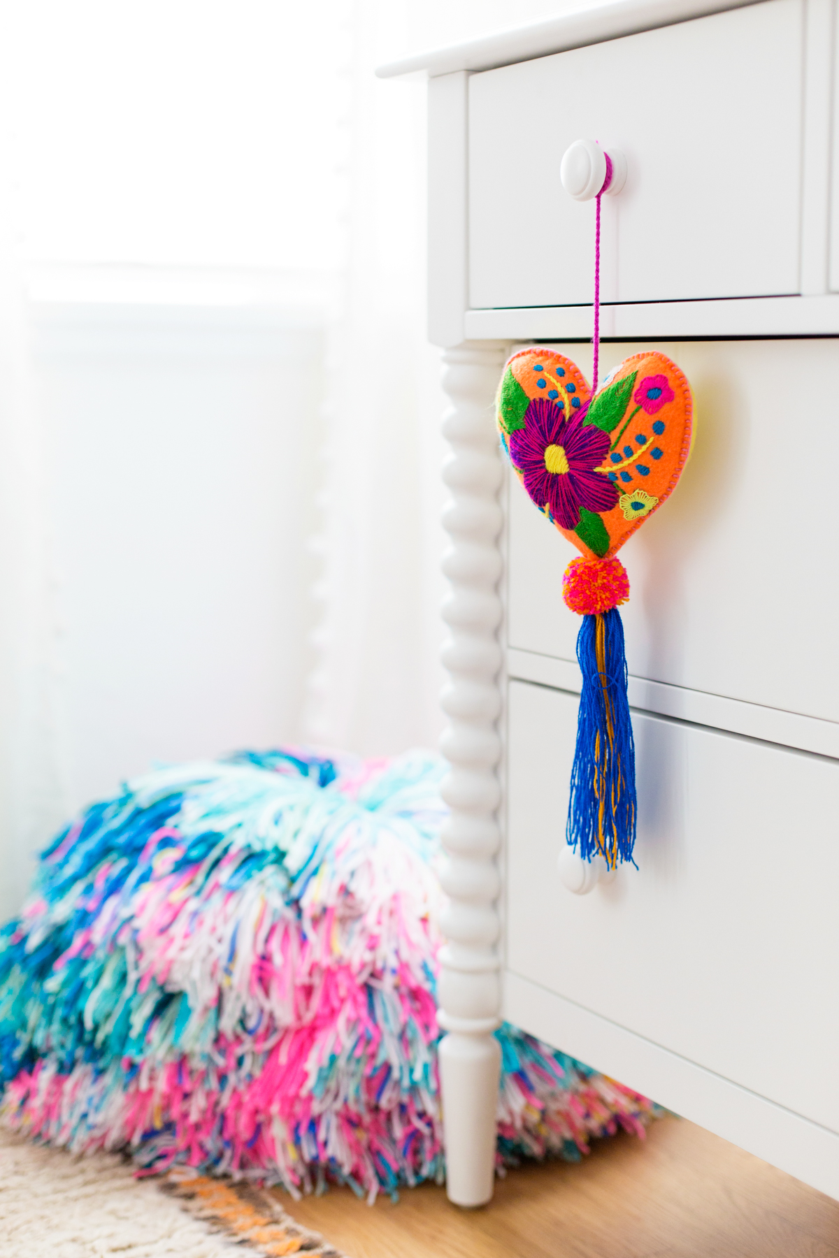Việc trang trí bằng những quả cầu tua mang lại cảm giác thoải mái, hoàn hảo cho không gian thân thiện với trẻ.