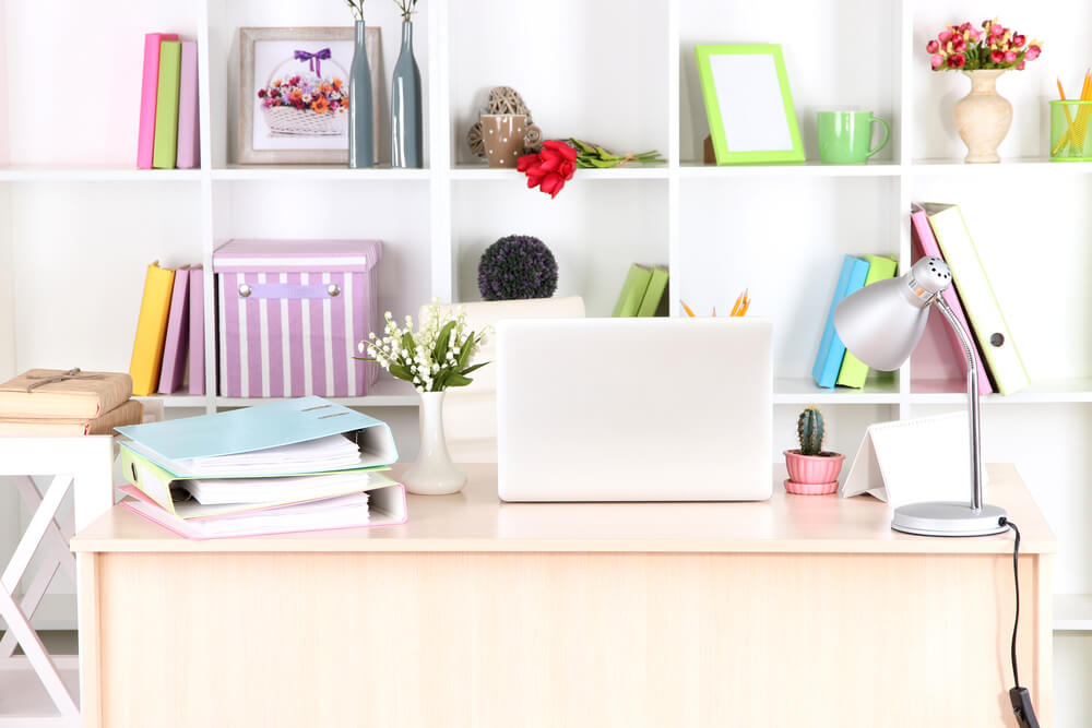 Nếu bạn thích nhiều màu sắc trong một không gian, bạn có thể đạt được điều đó mà không giống như văn phòng của bạn là phòng ngủ của trẻ em. Các màu sắc tươi sáng kết hợp với phông nền trung tính màu trắng. Các màu sắc nổi bật hơn, trong khi màu trắng thêm hấp dẫn hiện đại.
