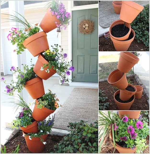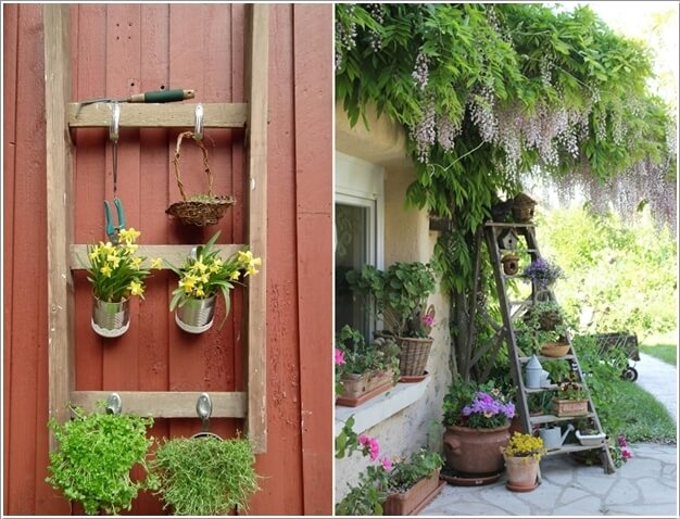 Bạn có thể sử dụng những đồ vật cũ để trồng hoa và trang trí xung quanh.