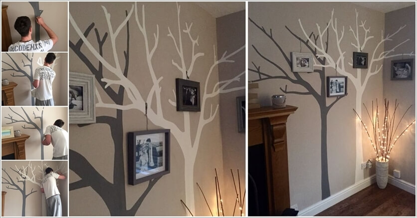 Sơn vẽ cây trang trí tường và đừng quên treo thêm hình ảnh để tô điểm cho bức tường.