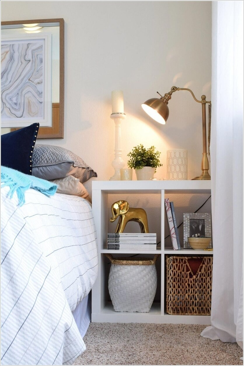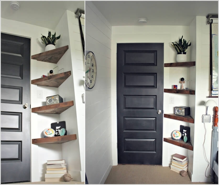 Thiết lập một kệ ở góc tường, tận dụng tối đa diện tích cho không gian lưu trữ.