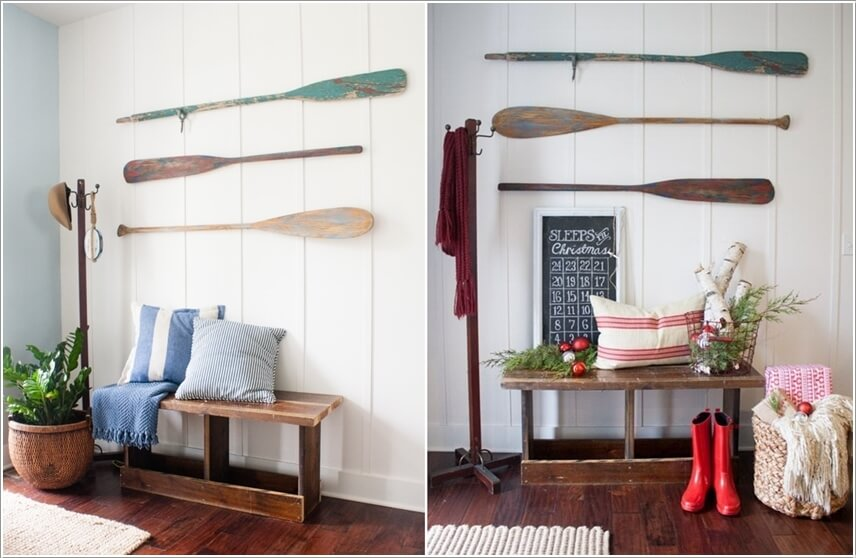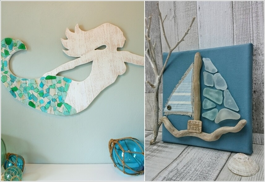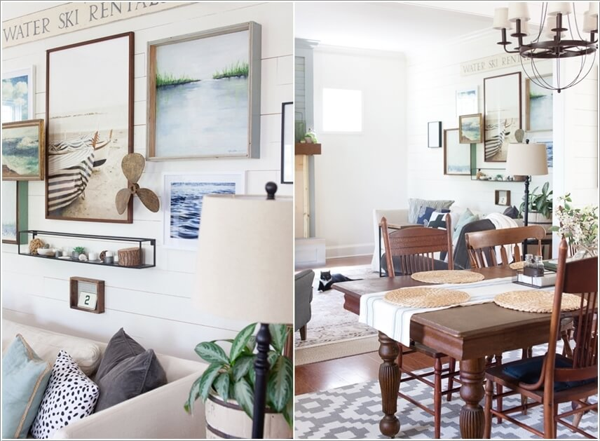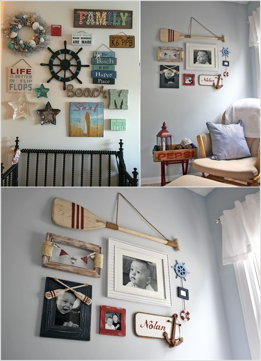 Thiết kế một bức tường với những bức tranh nghệ thuật mang chủ đề biển cả.