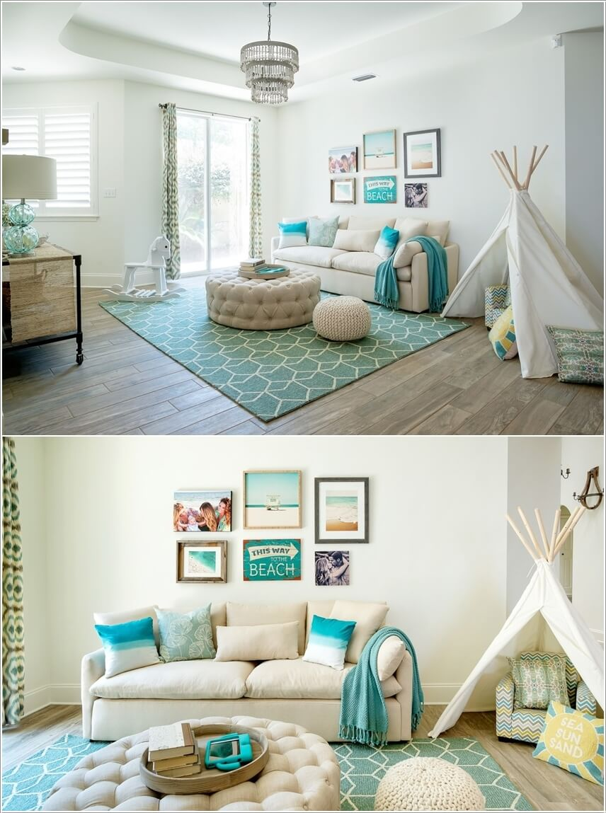 Không cần sơn sửa cả phòng, chỉ cần tạo điểm nhấn nơi tấm thảm, khăn hay gối ôm với màu xanh đặc trưng của biển, cả không gian mát mẻ, thoáng mát đang chờ đón bạn.