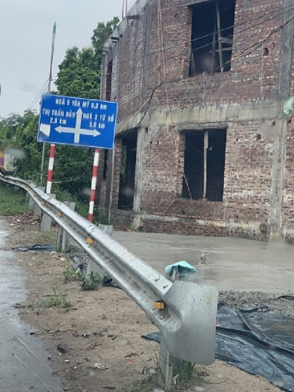 Nhiều công trình nhà ở thôn Lạc Cầu xây dựng vi phạm hành lang giao thông, có gia đình đang dựng khu sắt chuẩn bị dựng nhà trên đất trái phép vi phạm hành lang giao thông