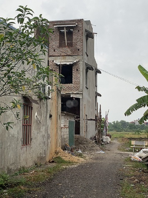 Ngôi nhà 3 tầng gia đình ông Hoan, thôn Tử Cầu xây trên đất ruộng 03 đang được hoàn thiện