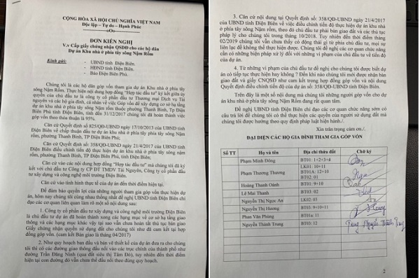 Cùng với đó, căn cứ nội dung tại Quyết định số 358/QĐ-UBND ngày 21/04/2017 của UBND tỉnh Điện Biên về việc điều chỉnh tiến độ thực hiện dự án khu nhà ở phía tây sông Nậm Rốm, theo đó chủ đầu tư phải bàn giao đất và các thủ tục pháp lý cho chúng tôi trong tháng 01/2018. Tuy nhiên đến thời điểm hiện tại, họ vẫn chưa thấy có động thái gì từ phía chủ đầu tư.