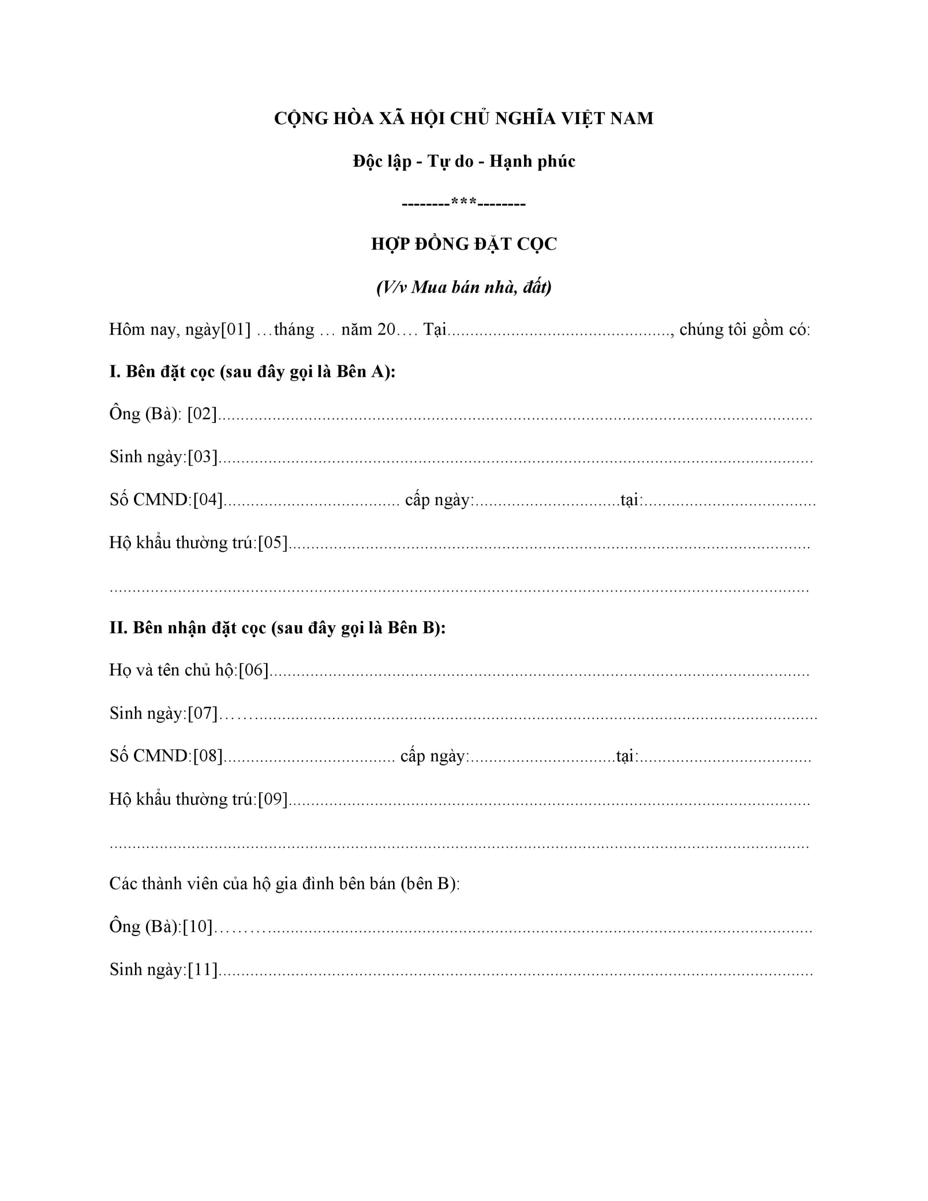 - [01] Địa điểm, thời gian ở nơi bên A và bên B kí kết hợp đồng đặt cọc mua bán nhà đất;