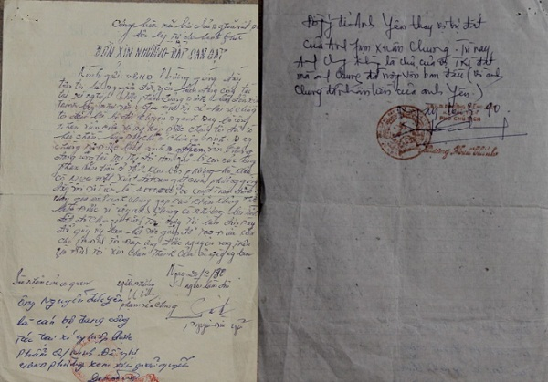 Giấy tờ mua bán, chuyển nhượng đất đai của hộ gia đình ông Yên có xác nhận của chính quyền địa phương từ năm 1990.